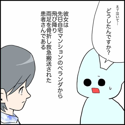 カテゴリ :忘れられないエピソード 【漫画】自殺未遂の患者さんの苦しみ 自殺を図るほど辛い思いをされたのだから、なぜそうしたんだと責めるのではなく、想いに寄り添うことが大切ではと思うのです。そしてこのケースでは本人の精神的フォローは勿論のこと、家族に本人へ今後どのように接していくか指導も必須です。皆さんならどのように対応しま ... 自殺を図るほど辛い思いをされたのだから、なぜそうしたんだと責めるのではなく、想いに寄り添うことが大切ではと思うのです。そしてこのケースでは本人の精神的フォローは勿論のこと、家族に本人へ今後どのように接していくか指導も必須です。皆さんならどのように対応しますか?