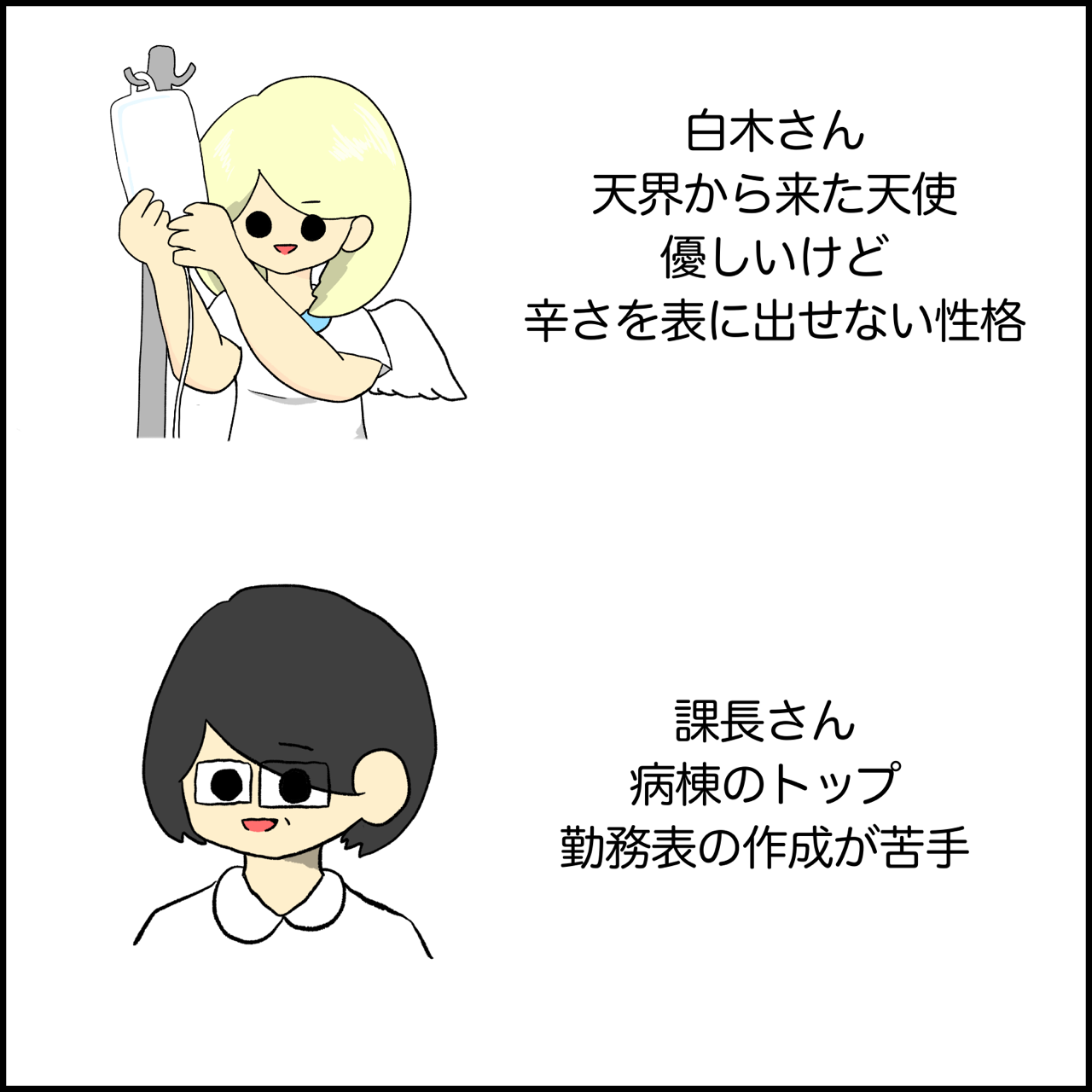 【自己紹介】漫画の主要登場キャラクター紹介 2020年07月17日 はじめましてぱれちにと申します病棟で看護師をしながら、医療従事者向け、主に看護師向けに漫画を描いています 今回は漫画に登場する主要な登場キャラクターを紹介しようと思いますみんな年数も様々な看護師です主に急性期病院での病棟での日常を描いていきます。ごゆっくりブログをお楽しみいただければ幸いです。宜しくお願いしますぱれちに 「お知らせ」カテゴリの最新記事 次の記事 > コメント コメントフォーム 名前 コメント 記事の評価 リセット リセット 顔 星 情報を記憶 コメントを投稿する